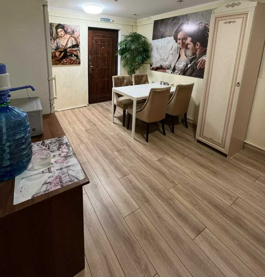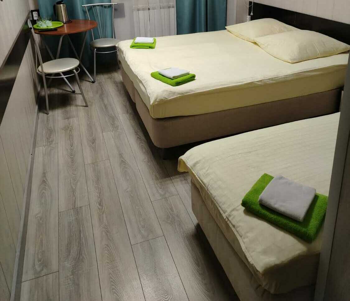Отличное расположение, тихий район, легко добраться в любой район города на общественном транспорте. Чистый и уютный небольшой номер в нем есть чайник и чашки.